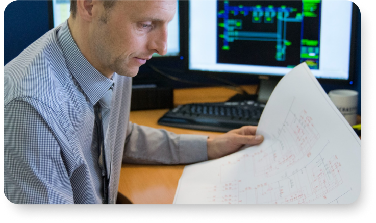 Protection & Control design ensures power systems operate safely under normal and fault conditions. The process includes controlled design stages, checks, documentation, version control, and scheme testing. Designs account for system configuration, operating parameters, mechanical and electrical limits, and phased replacement strategies.